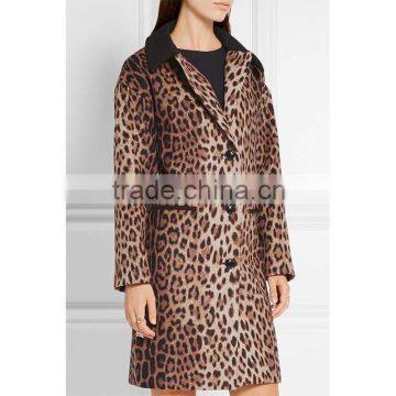 2016 Latest Women Winter Leopard Print Wool Blend Coat HSC9513