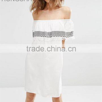 Latest Designs Off The Shoulder Machine Embroidery Tassle Dress HSD2367