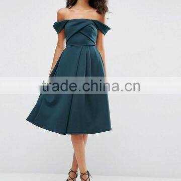 Fold Detail Bardot Scuba Prom Dress Designer One Piece Party Dress HSD5395