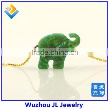 Name: 12*14mm Synthetic Grenn Opal Elephant Pendant 925 Sterling Silver 18K plated Chain Necklace