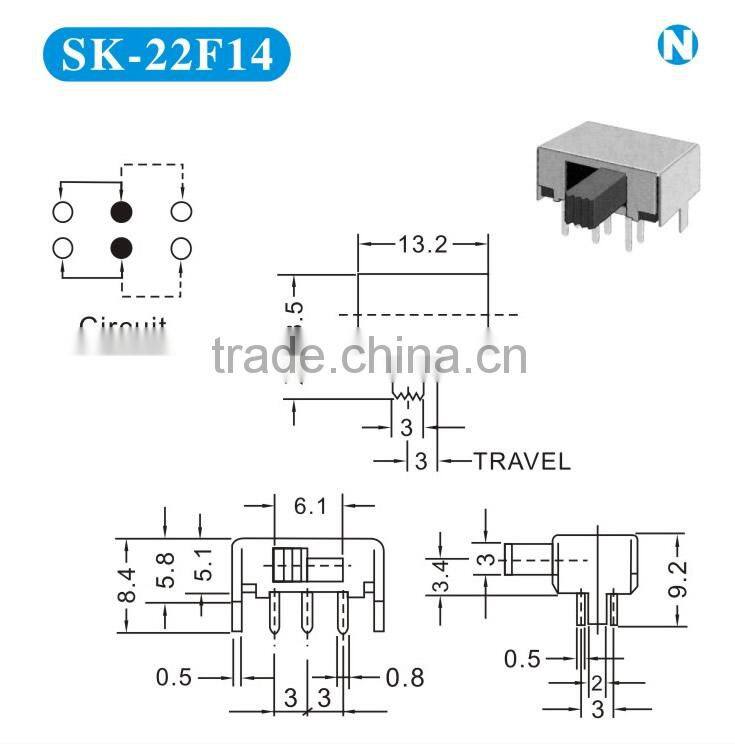 high quality 2 position 2p2t horizontal slide switch slide switch SK-22F14G5