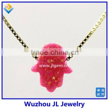 Synthetic 8*10mm Bubble Gum Opal Hamsa Shape 18K Plated Chain 925 Sterling Silver NecklaceUS$ 7.5 - 10MOQ: 50 Pieces