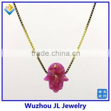 Name: Synthetic 8*10mm Bubble Gum Opal Hamsa Shape 18K Plated Chain 925 Sterling Silver Necklace
