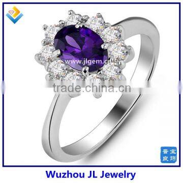 JL Jewelry Wholesale Price Ovals Purole Crystal Stone Silver Ring