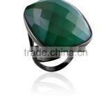 Gold or Black Plated Fashion Ring With Natural Stone