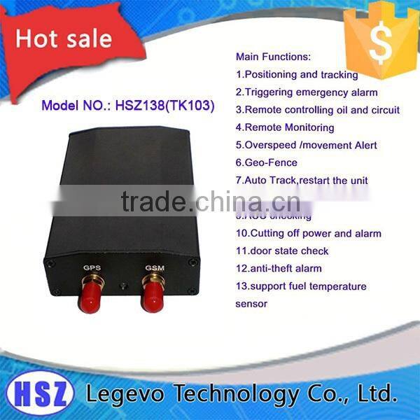HSZ138(TK-103) is basic GPS vehicle tracker with simple locating and tracking. It connect with external GPS/GSM antenna. Fashion design, alloy shell,high precisie locating. Also it support blind zone to fill the data. It's a mass storage device.