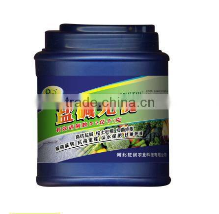 In additon to produce nutrients for demanding of crop growth,this product mainly product large of organic acid such as acid activity substances.shortly break soil harden,reduce PH value 1.5-2 in 5-10 minutes.make the soil become aggregate structure.deepening the plough layer, because of increasing of microorganism activity,it can produce large of RNA type of adhesive substances,mineral colloid and soil organic matter in combination,form the aggregate structure to increase the soil permeability,protect water,fertilizer and irrigation.fully water soluble,absorb well,no residue,not rebound,it is the new type of improved agent for salt management and desert greening.friendly,biodegradable,harmful to human being and animals.directly save investment in irrigation and humans and material,real improvement that year when planning when high-yield.