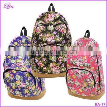 Vintage Retro Rose Floral Printing Backpack Women's Canvas Travel Backpack for Teenage Girls Rucksack