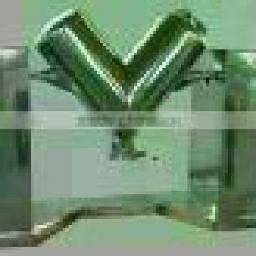 This machine has the following distinguishing features, no blind eagle in the cylinders, no accumulation of materials, high speed, and short mixing time. With the body made of stainless steel and both inner and outer walls polished, the cylinders have elegant appearance. The charging of materials can be made either by manual operation or through vacuum suction. For discharging, rotating valves and rapid swivel heads are adopted. This mixer is applicable for mixing powdery or granular materials in pharmaceutical and other industries. It consists of two V-type cylinders of different altitudes, and through mechanical transmission the materials in these cylinders are made to move back and forth and turn over again and again, thereby achieving the goal of uniform mixing.