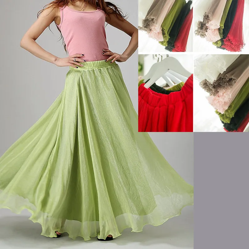 Green Women's Long Skirt Pure Colour Maxi Skirt 60 Inch Madam Dress Summer