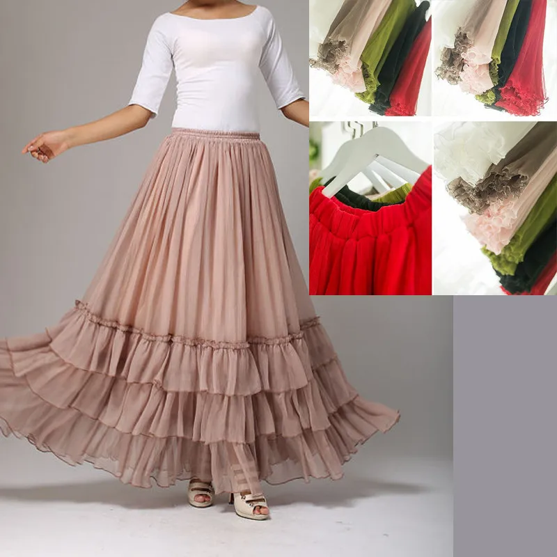 Brown Ladies Petticoat Layer Women Long Skirt Summer Madam Maxi Skirt Popular
