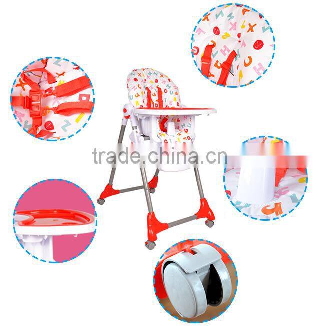 Manufacturer Newest Design For 2016 Durable PU Plastic High Chair Baby Folding Chair