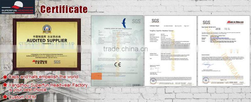 2). We are SGS audited caps manufacturer in china and we are the alibaba gold verified supplier. We develop and manufacture a variety of types of popular design hat, such as LED lighting caps, Fiber optic caps, Bottle opener caps, Baseball caps, Bucket hats, Visors, Trucker caps, Military caps, Safety caps, Winter hats, Hip-Hop caps, Camouflage caps, Knitted hats, Solar caps and so on.