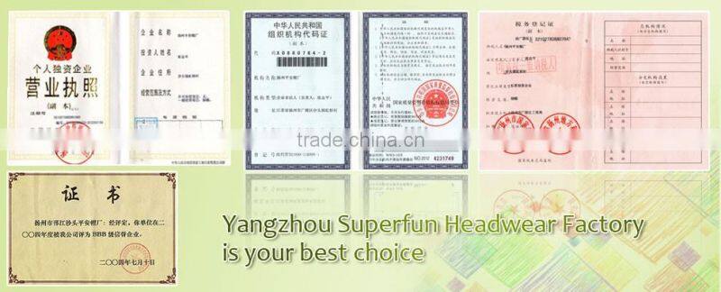 1). Yangzhou Superfun headwear factory is established in 1988 in Yangzhou city Jiangsu province and specialized in hat & caps making for over 20 years.