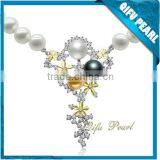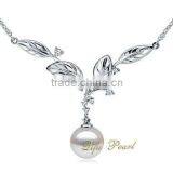 Newest Wholesale Luxury Flower Big Pearl Necklace Design in 925 Sterling Silver
