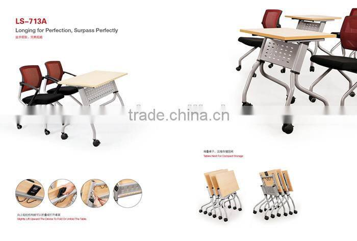 Small Folding Table With Wheel / Good Quality Steel Frame Foldable Study Table