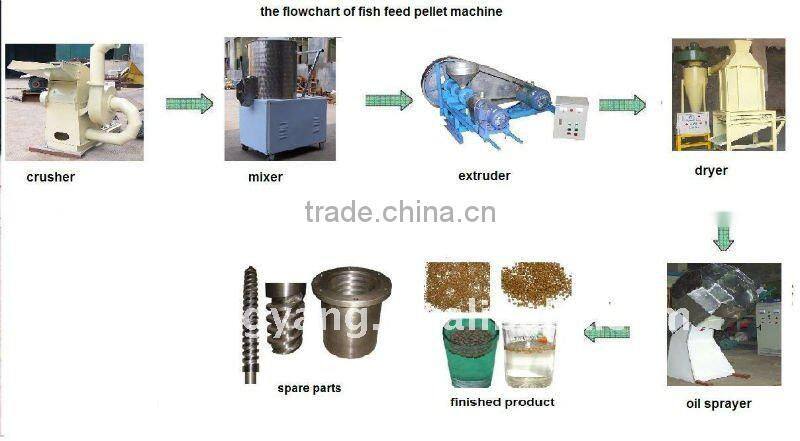 flour pellet extruding machine is widely used for producing grains into high-grade aquatic feed pellets for fish, catfish, shrimps, crab etc. The puffing fish feed pellets can float on the water surface without dissolution for over 12 hours. According to your requirement and production scale, flour pellet extruding machine can be classified into dry type machine and wet type machine.