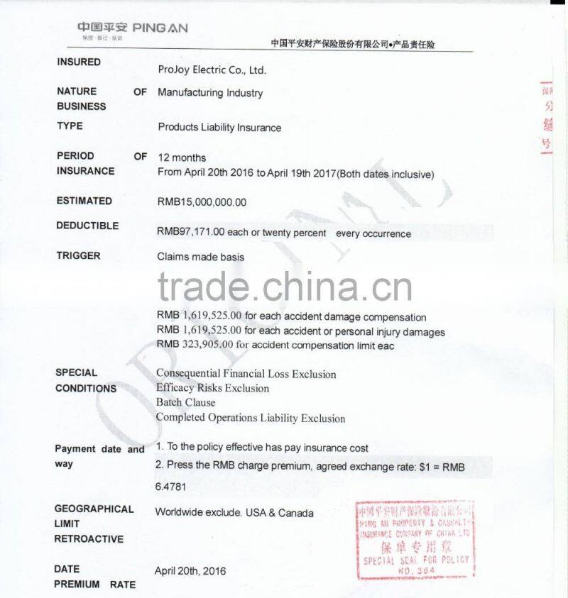 15~25 years warranty underwrite by Pingan Insurance Company
