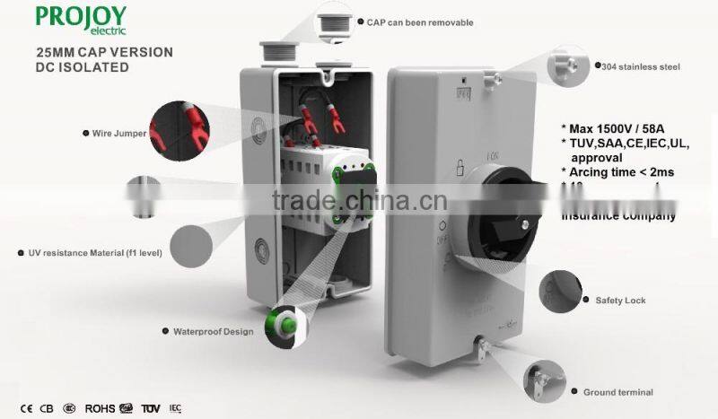 3. Launch new brand PROJOY® since 2013 in Italy and committed to combine foreign advanced technology, the overseas quality materials and the domestic low-cost assembly, providing customers with the highest ratio solution. Now PROJOY®is one of the biggest built -in DC isolator supplier for solar inverter manufacturers.