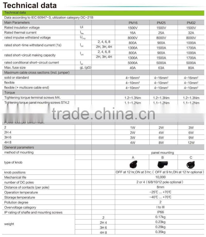 DC Isolator Switch Internal Built in PV Solar 1500V 2-12pole Panel Mounting