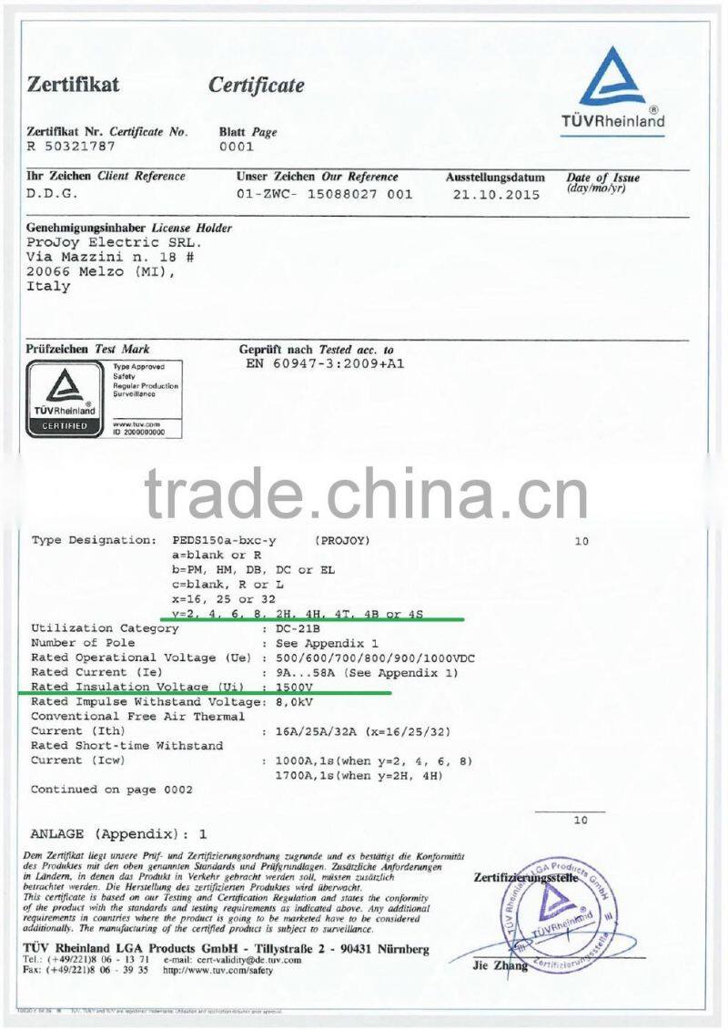 3. Launch new brand PROJOY® since 2013 in Italy and committed to combine foreign advanced technology, the overseas quality materials and the domestic low-cost assembly, providing customers with the highest ratio solution. Now PROJOY®is one of the biggest built -in DC isolator supplier for solar inverter manufacturers.