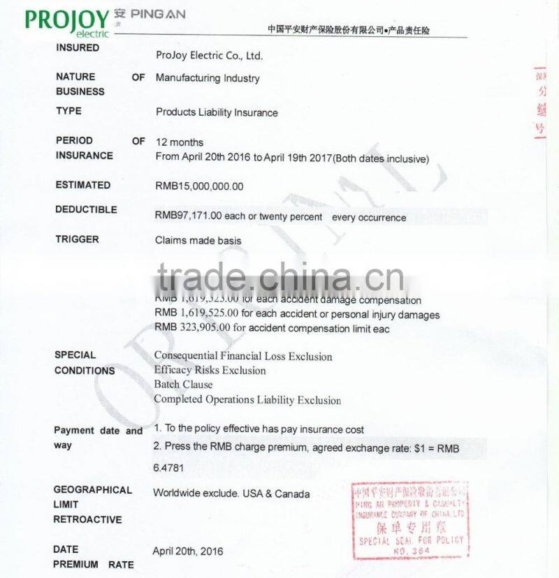 10 years warranty underwrited by PIN AN insurance company, covering damage & recall. So your clients can easy buy PROJOY product without any risk :-)