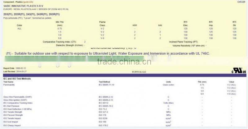 "Suitable for outdoor use with respect to exposure to UV light, water Exposure and Immersion in accordance with UL 746C"