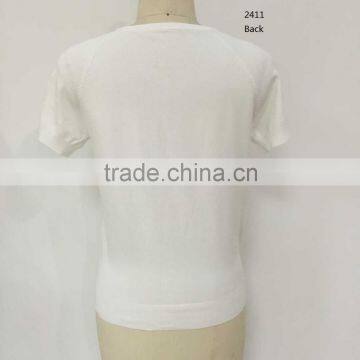 2016 Spring/summer High Qaulity Crew Neck Short Sleeve Plain Body With Hotfix Pullover Sweater