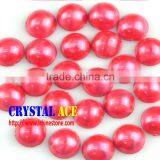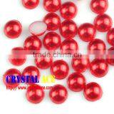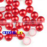 Bright Red Color Fauxed Iron-on Artificial Pearls, ABS Flat Pearls , Half Round Pearls Hor Clothes