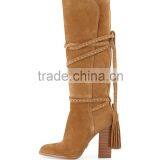Catwalk Branded Design Suede Leather Women Boots Heels Fashion Brown Tassel Boots Custom Made Large Size High Heels Boots