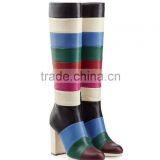 Brand Wholesale Women Boots From China! Copy Leather Pretty Collaged Colorful Teenage Heels Boots
