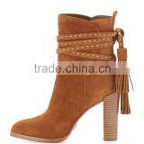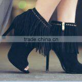 New Collection of Woman Tassel Ankle Boots! Fashion Side Zipper High Heel Shorted Boots! China Customized Plus Size Boots!
