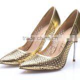 2015 Gold Color Women Dress Shoes Pumps of Office Ladies Top Quality Lady Leather High Heel Shoes
