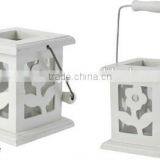 Outdoor Decor Wood Carved Candle Lantern With Metal Top