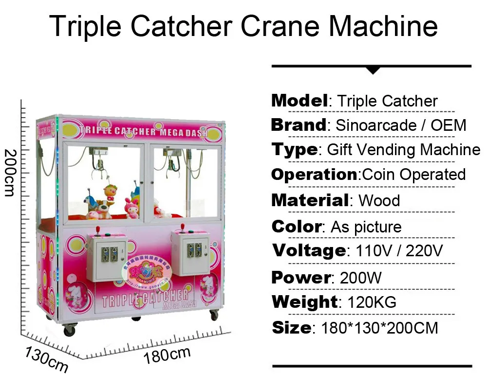 Good Price Coin Operated Two Players Plush Novelties Triple Catcher Crane Clawing Game Machine