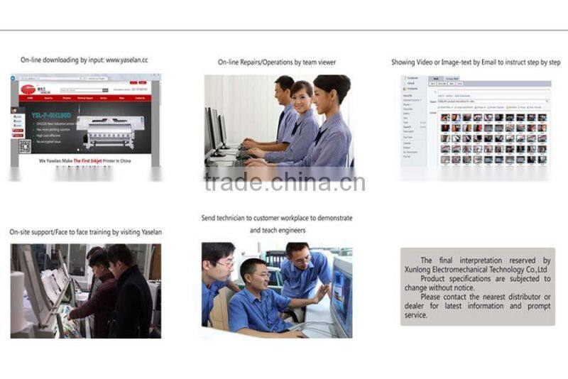 Color management :Cooperate with Ink supplier,board supplier and make the most suitable files to fit Yaselan printer,coodinated wave curve/driver/Rips/ICC files.So far we have Maintop/Photoprint/Seeget/Wasatch/Colorgate available and works for Water-based ink /Eco-solvent ink /Solvent ink /Sublimation ink /UV ink.