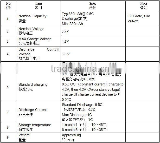 Wholesale 3.7v 350mah Lipo Battery / China Lipo Battery