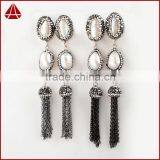 Wholesale Natural Pearl Boho Tassel Dangle Earrings, Fashion Bohemian Pearl Tassel Earrings With Black Chain Tassel