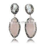 Rose Quartz Pave Diamond New Stylish Jewelry, Wholesale Designer Diamond Earring, Handamde Diamond Gemstone Drop Earring