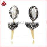 Fresh Water Pearl Earrings, Pearl Jewelry, Rare Morocco Shark Tooth With Black Gun Zircon Dangle Earrings