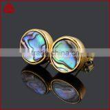 Sparkling Blue Jewelry Abalone Shell in Gold Round Circle Stud Earrings
