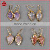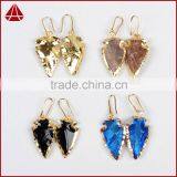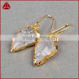 Wholesale Fashion Raw Crystal Quartz Arrowhead Earrings Micro Pave Plated Earrings New Model