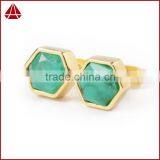 Fashion Chrysoprase Jewellery Square Beads Gemstone Stud, 18K Gold Plated Australian Jade Earring Jewelry Suppliers