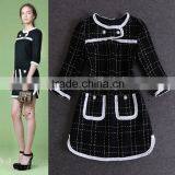 2014 New Arrival Unique Designs Branded Black Fashion Plaid Pattern Half Sleeve Woolen Autumn-winter Dress for Women L27233