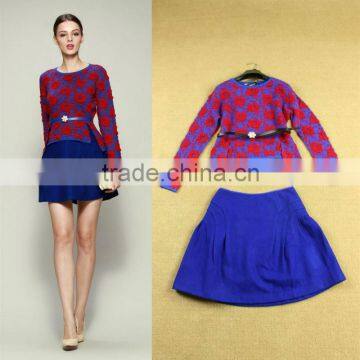 2014 Brand name Newest european runway styles edelweiss knitted models sweater tops +mini skirts with belt D1691501