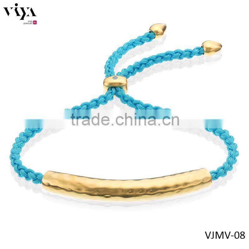 316 Stainless steel plated real 18k gold inlaid zircon stone+light blue cotton line