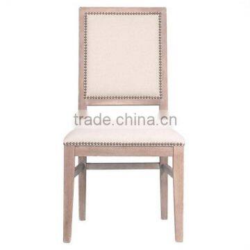 French Style Solid Oak Wood Design Dining Armless Chair With White Back