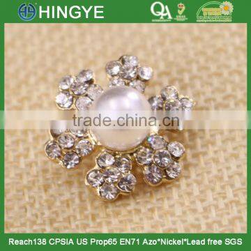 wholesale gold flower rhinestone button with a center pearl 15775-2