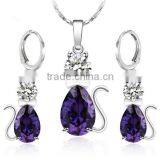 Platinum Plated Purple Clear Crystal Jewelry Set FQ-J36