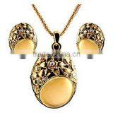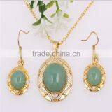 14K Gold Plated Oval Jade Pendant Jewelry Set FQ-1301